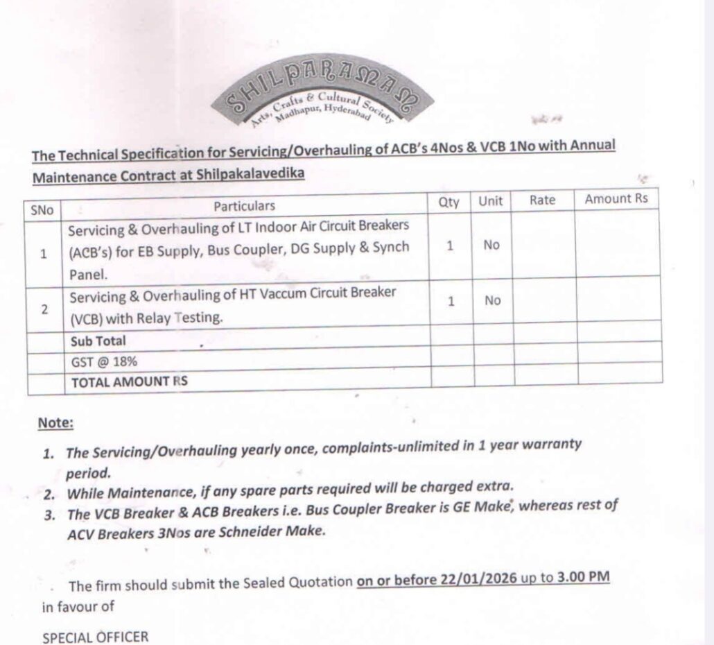 TENDER ANNUAL MAINTAINANCE OF SHILPAKALAVEDIKA