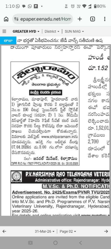 Revised Food Court Tender at Mini Shilparamam, Uppal