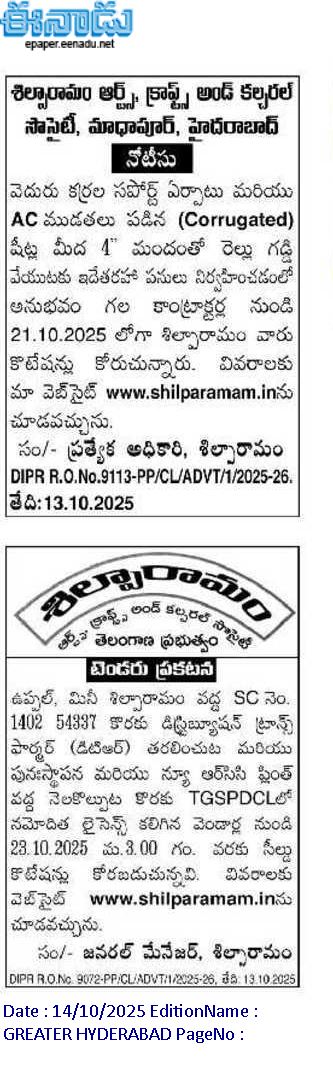 7th December 2024 from 5:30pm to 7:30pm onwards at Mini Shilparamam Uppal.